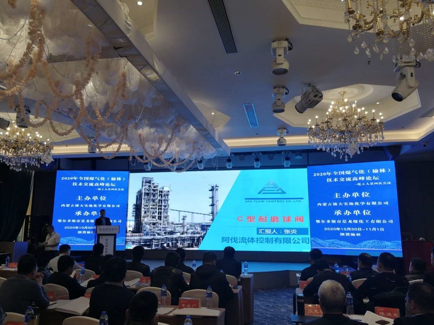 来自陕、蒙、宁煤化工基地水煤浆气化生产企业、煤化工设计院所及现代煤化工重要装备产品供应商相关业务人员参加本次会议。会议期间我公司代表与部分生产企业代表进行了深入交流,包括延交能化、荣信化工、伊泰煤制油、宝丰能源、榆林甲醇厂、未来能源、中天合创、神华包头、亿鼎化工、凯越煤化、易高煤化等企业代表进行了交流,回答了提出的问题。jinnianhui今年会流体控制有限公司在本次技术交流年会上做了题为《C型耐磨球阀在煤气化装置中的应用》交流报告,受到了与会代表和专家们的好评。